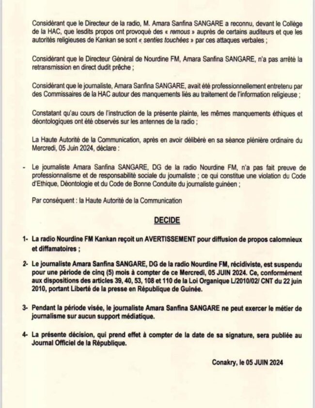 Kankan: la Hac adresse un avertissement à une radio appartenant à un homme religieux et suspend son DG